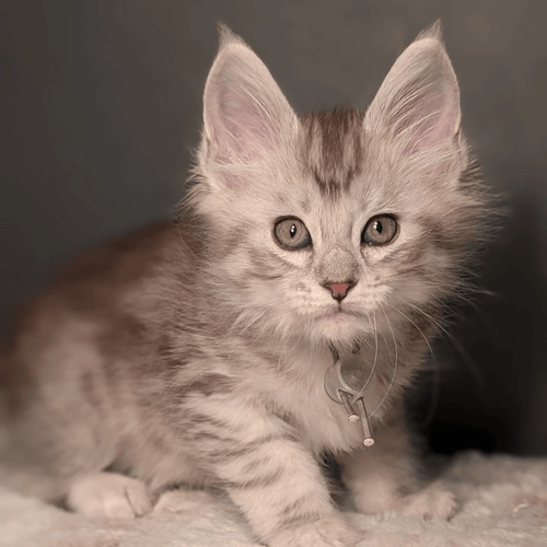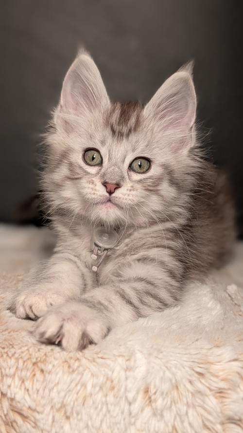 Mâle Maine coon de couleur bleu silver mackrel tabby, fils de Toscane et Clyde